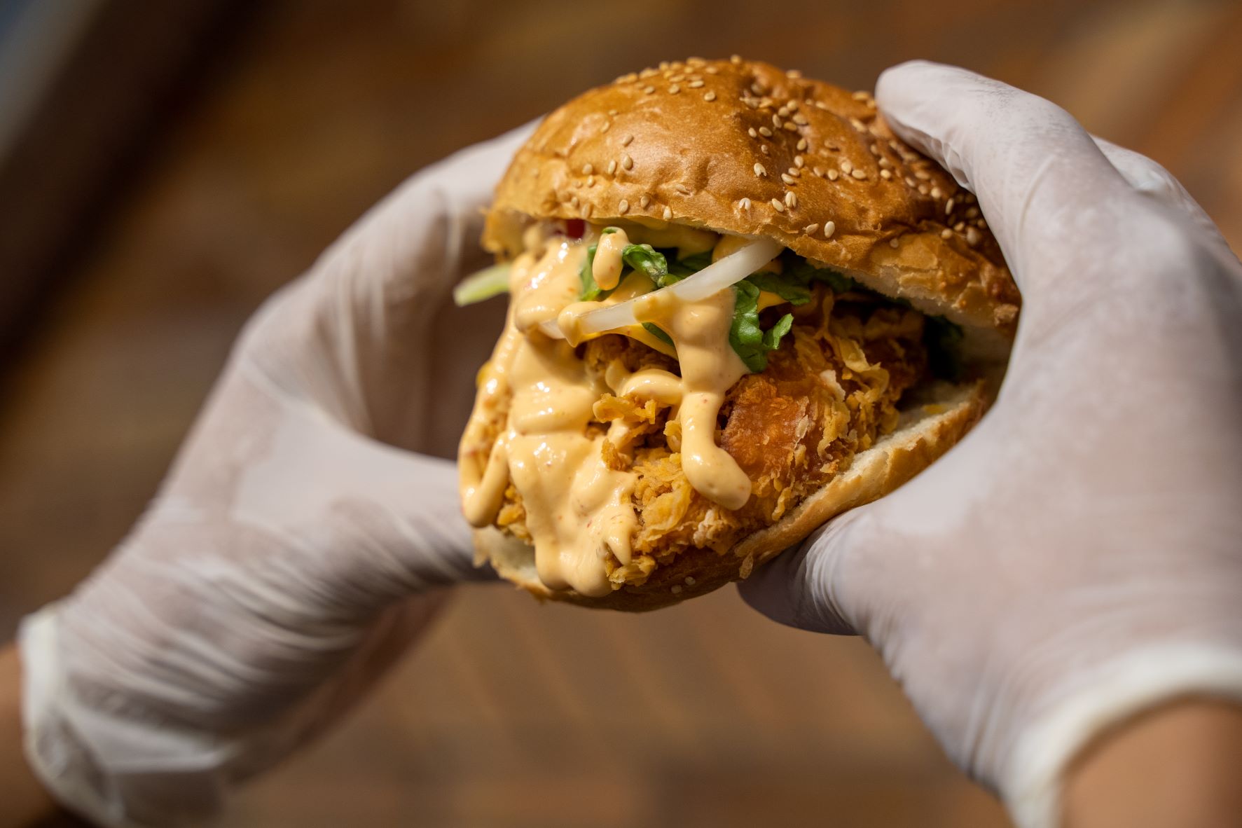 قطعة دجاج مقرمش + شريحة جبنة + سلطة + شرائح الفلفل الحار + صوص الساموراي